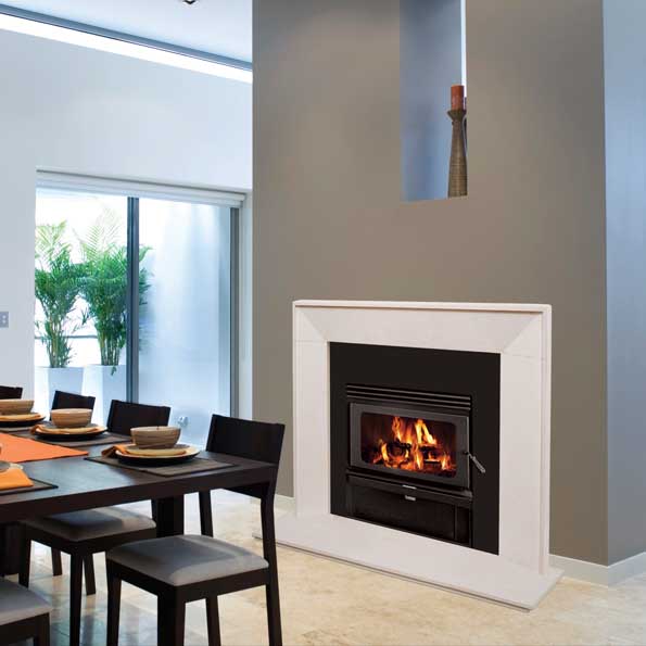 The inbuilt Coupe is a large double-sided convection heater. With a heating capacity of up to 240 square metres, this powerful fireplace is perfect for large open plan areas.