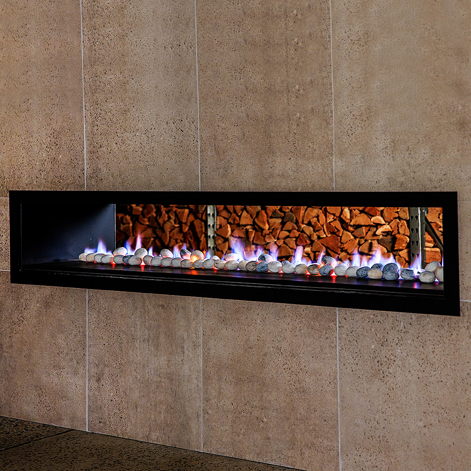 Primarily a decorative appliance providing radiant warmth, the double sided fire is also a great way to divide two rooms whilst keeping a refreshing open feel. When fitted with the Heat Zone kit the Horizon Fireplace is an effective and powerful heater.