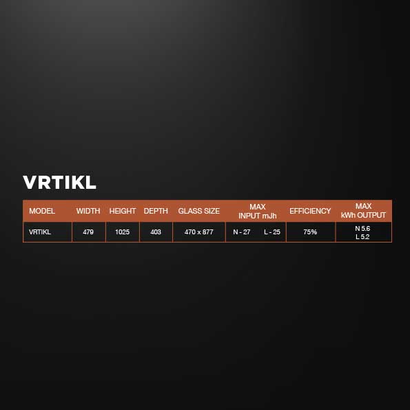 The sleek, efficient and easy to install VRTIKL features a unique parabolic design with a stylish curved front glass panel and uses a completely sealed balanced flue system that can vent off the top or rear.